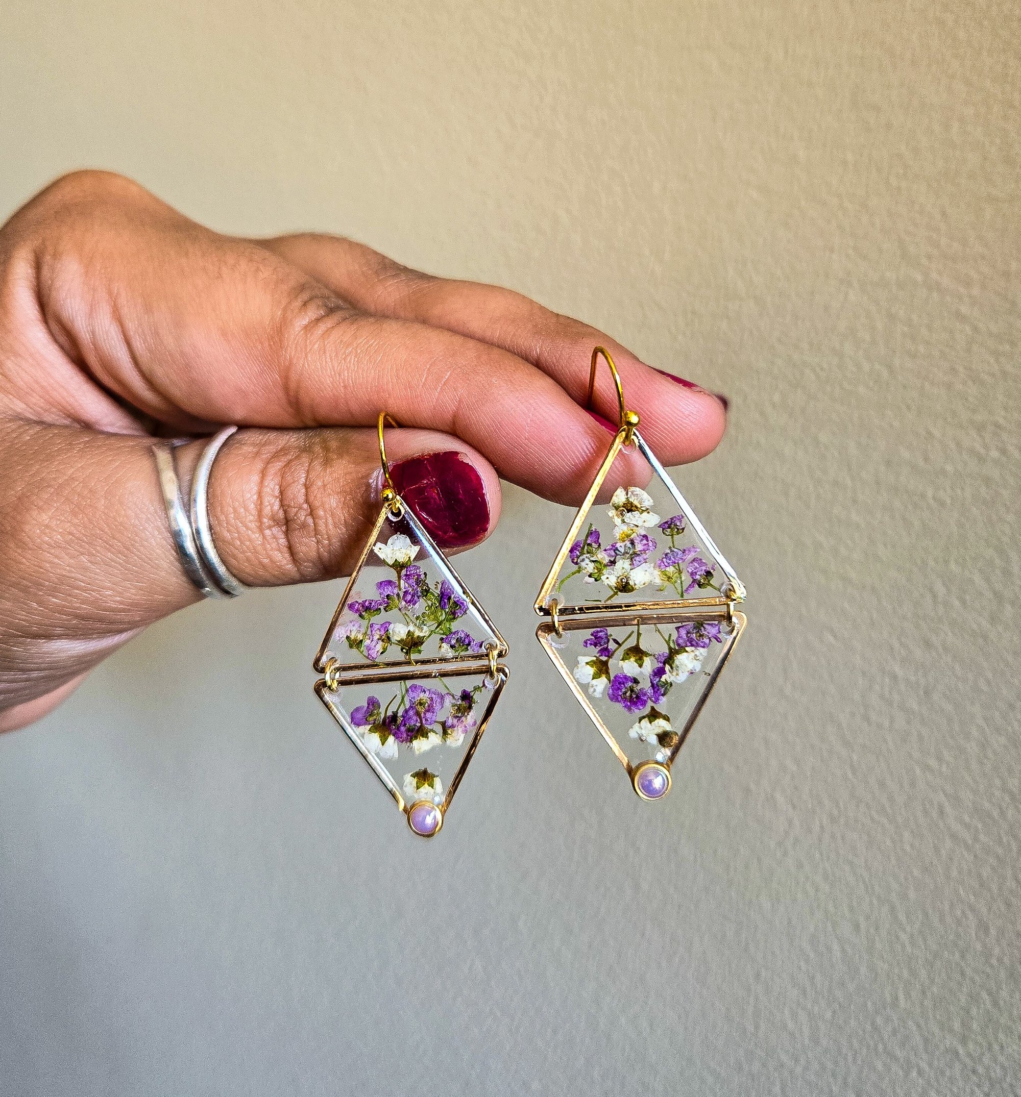 Pressed alyssum, bead charm, 14k Gold played hypoallergenic hook